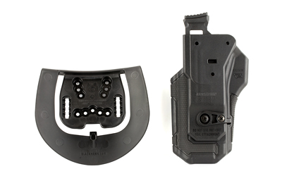 Multiple holsters for multiple handguns is no longer an issue. The Blackhawk(R) Omnivore(TM) is a multi-fit holster that accommodates more than 150 styles of semi-automatic handguns with an accessory rail. The active retention mechanism locks onto Blackhawk’s proprietary Rail Attachment Device, not the frame of the handgun. A thumb release disengages the locking mechanism when drawing the handgun.