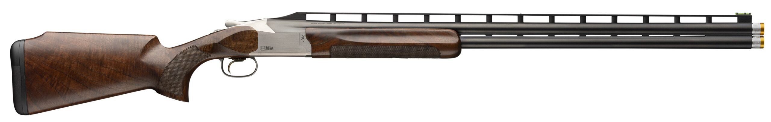 Lock in with a new Citori 825 Trap over and under shotgun. Features sculpted Grade III/IV checkered walnut buttstock with a raised Monte Carlo comb and semi-beavertail forearm with finger grooves. Engraved low-profile steel receiver with new styling engraving and a silver nitride finish. New Fire Lite 2 Mechanical Trigger Inflex II recoil pad Invector-DS chokes. High-post trap rib. – Citori 825 Trap Exclusive Features – Gloss finish Grade III/IV walnut stock with vertical grip and palm swell – Monte Carlo comb – Semi-beavertail forearm with finger grooves – High-post floating rib – Inflex II recoil pad – Triple Trigger System with three trigger shoes – HiViz® Pro Comp sight and ivory mid-bead – POI: 70/30 – Ideal for trap – Citori 825 Features – Low profile receiver with sharp modern contours – Transverse mounted full-width hinge pin maximizes strength and longevity – Tapered locking lug and recess self-adjusts for wear to keep lock up tight – Chrome chambers increase durability and corrosion resistance – Inflex II Recoil Pad (except Trap Max) – Fire Lite 2 Mechanical Trigger – Steel Shot Performance – Vector Pro Lengthened Forcing Cone – Invector-DS Choke Tube System – Back-Bored Technology