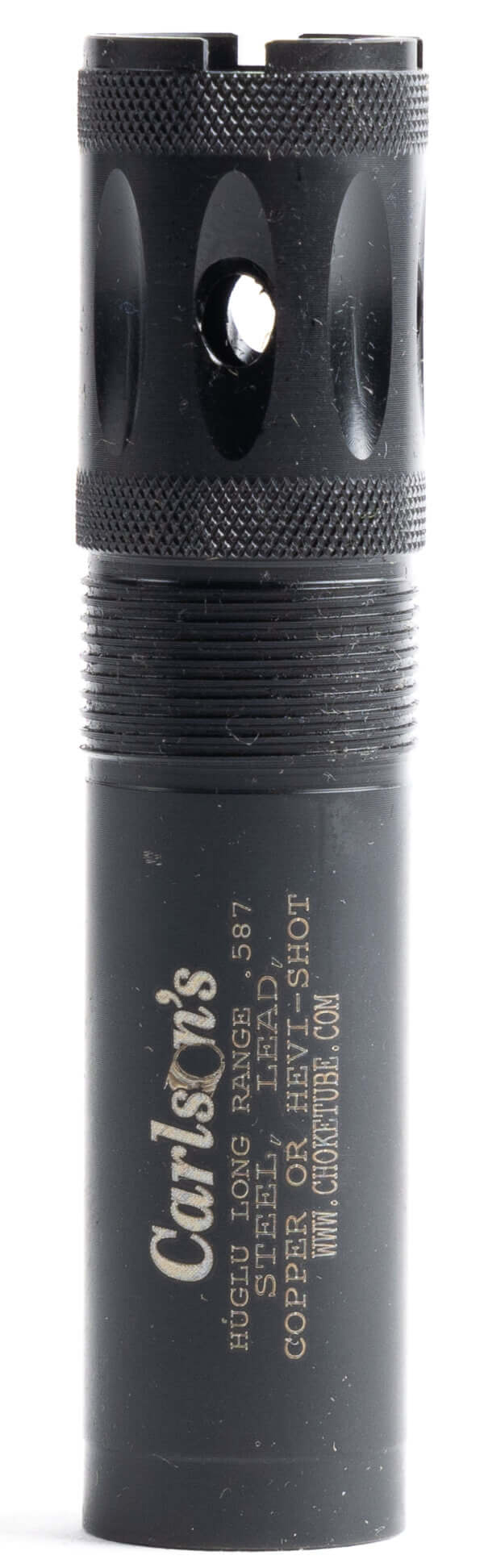 HUGLU Cremator Ported Waterfowl Choke Tubes Carlsons Cremator® Choke Tubes feature our brand new Triple Shot Technology (TST) and is offered in close mid and long range constrictions. TST is a series of three graduated rings in the taper section of the choke tube that allows a more gradual transition from the shotgun bore to the final constriction. This design offers reduced pellet deformation less flyers and more dense patterns. These benefits make the Cremator® Series extremely effective on all types of waterfowl throughout the entire season. The Cremator® series has no size or speed restrictions with steel shot in any of the three constrictions. You also get all the benefits of an extended choke tube including a 25% longer parallel section for tighter and more dense patterns wrench-less installation quick removal and helps with muzzle protection. They are offered in your choice of ported or non-ported configurations. Like all of our tubes Carlsons Cremator® Series Choke Tubes are made in the U.S.A. carry a lifetime warranty and are precision-machined from heat-treated 17-4 stainless steel.