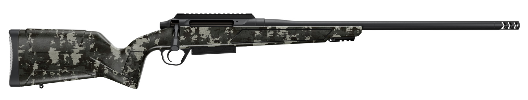 The all-new Christensen Arms Evoke. It’s time to Pursue Your Legacy. This innovative rifle from Christensen Arms is offered in four distinct feature-rich models* that are intentionally built to tackle any challenge you throw at them. – Featuring a Christensen Arms precision machined receiver detachable magazine hybrid grip angle premium adjustable trigger 416R stainless steel suppressor-ready barrel with an RFR-style brake integrated Picatinny rail swivel sling studs and adjustable cheek riser and optic-ready base on select models; Evoke has it all. Each model was carefully designed with purpose to not just meet but exceed the needs of hunters and shooters of all kinds and is backed by Christensen Arms’ legendary Sub-MOA Guarantee and Limited Lifetime Warranty. – Evoke Hunter – The Hunter model elevates the Evoke line with a proprietary Christensen Arms Hunter Camouflage pattern. Additionally the Hunter model comes optic-ready with a 0-MOA Picatinny scope base installed at the factory. – BARREL – MATERIALS – CHRISTENSEN ARMS CERAKOTED 416R STAINLESS STEEL BARREL – THREAD PITCH – 5/8 x 24 (STANDARD) – MUZZLE – REMOVABLE PREMIUM RFR STAINLESS STEEL BRAKE – MORE DETAILS – BUTTON RIFLED – HAND LAPPED – MATCH CHAMBER – FREE FLOATING – ACTION – SPECS & MATERIALS – CHRISTENSEN ARMS PRECISION MACHINED RECEIVER – CAPACITY – 4 ROUNDS (3 MAGNUM) DETACHABLE MAGAZINE – TRIGGER – ADJUSTABLE TRIGGERTECH ® 2.5-5 LBS (FACTORY SET AT -3LBS) – OPTIC COMPATIBILITY – STD REM 700 COMPATIBLE – 0-MOA PICATINNY SCOPE BASE (HUNTER AND PRECISION MODELS) – STOCK – MATERIALS – POLYMER – MORE DETAILS – INTEGRATED PICATINNY RAIL SECTION (ARCA RAIL SECTION ON PRECISION MODEL) – HYBRID GRIP ANGLE – ADJUSTABLE FFT CARBON FIBER CHEEK RISER (PRECISION MODEL) – RECOIL PAD