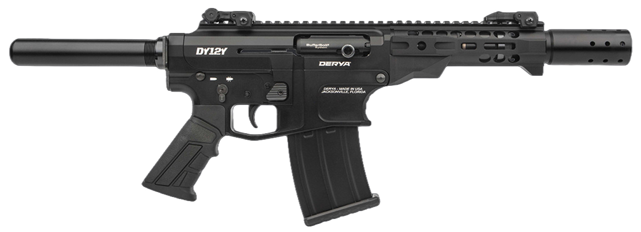Introducing the Derya DY12Y where compact design meets formidable firepower. – This Semi-Auto 12GA Firearm with its tactical 11 barrel and compact 30 overall length is the epitome of versatility – perfect for home defense or a dynamic day at the range. The DY12Y is engineered with a melotine finish for durability and style ensuring it stands out in both performance and aesthetics. It features an adjustable buffer system allowing for recoil customization to match your shooting style while the included sling adapter and flip-up sights ready it for immediate action. Its magazines are designed for seamless interchangeability with other DY12 series products offering flexibility in capacity with the included 5-round and 10-round options and expandable to a 21-round drum for those who seek maximum firepower. – Chambered for both 2 3/4 and 3 magnum loads the DY12Y is a testament to American manufacturing excellence blending innovation with practicality in a compact yet powerful package. – Model Name: DY12Y – Chokes: Slug – Caliber: 12GA – Sights: Flip up – Capacity: 5 or 10 rds – Weight: 6.5 lbs – Stock Type: Sling adapter – Barrel Type: Smooth Bore Standard – Grip Type: Pistol Grip (AR Adaptable) – Threaded Barrel: Yes – Action Type: Semi-Automatic – Barrel Length: 11 – Finish: Black Anodized/Black Melotine – Overall Length: 30 – CA Compliant: No – Overall Width: 4 – MD Compliant: No – Overall Height: 9.5 – MA Compliant: No