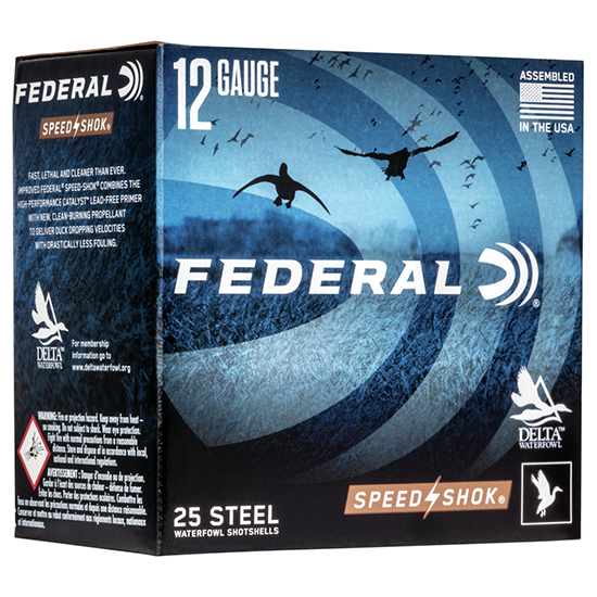 Speed kills ducks and geese. Now it kills even cleaner with redesigned Federal® Speed-Shok®. Its Catalyst™ lead-free primer and fast-burning powder dramatically reduce residue while its optimized velocities knock birds out of the sky. – Improved loads – Fast-burning clean propellant leaves drastically less residue in the barrel and action – Catalyst high-performance primer provides the most complete consistent ignition possible – Optimized velocities – Gauge: 12 Gauge – Shot Size: BB – Shotshell Length: 2-3/4in. / 70mm – Type: Steel – Muzzle Velocity: 1500 – Shot Charge Oz: 1 1/8 – Payload Pellets: 81.0 – Density: 8 g/cc – Package Quantity: 25 – Usage: Waterfowl
