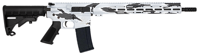 GLFA 223 Wylde Rifle Pursuit Snow Camo Cerakote 7075 Billet Lower Receiver 4150 CRMOV Nitride 16 Barrel with 1:8 twist 15.125 MLok style rail 1-30rd magazine