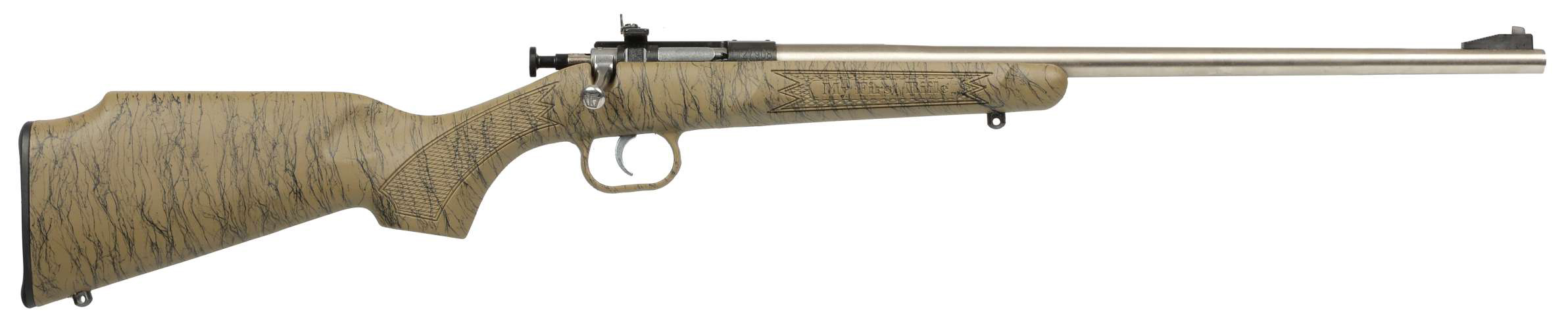 These NEW Webbed Designs are putting a new spin on our classic solid color synthetic stock options for your Crickett rifles – Safety: Rebounding firing pin automatically blocked to prevent accidental discharge. – Generation 2 Models features the EZ Loader to make loading your Crickett simple (Excludes 22WMR*). Also includes installed swivel studs**. – Generation 1 Models do not have the EZ Loader or installed swivel studs (primarily sold in Big Box retailers). – Specifications: – All models with exceptions: *No EZ loader in .22 WMR **No swivel studs in Ex Stock – Caliber: .22 S L LR WMR – Capacity: Single Shot – Weight: Under 3 lbs. – LOP: 11 1/2 – Barrel: 16.1 Blued or Stainless – Rifling: 1:16 – OAL: 30 – Sights: Adjustable Rear Peep / Fixed Front Post – Lifetime Warranty