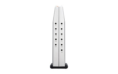 When polymer won’t work, Magpul’s AMAGs will. The same reliability and consistency you expect out of their PMAGs, now available in alloy magazines. The AMAG 15 SG9 is a 15-round SIG P320 9mm handgun magazine featuring a heat-treated, stainless-steel alloy body with polymer sub-components. Magpul AMAGs come with many of their proven features, including a high-visibility, controlled-tilt follower, stainless-steel spring, flared floorplate that’s easily removable for cleaning and routine maintenance, paint-pen dot matrix for magazine marking, and capacity-indicator windows which begin at five (5) rounds, and continue along the spine of the magazine in one-round increments.