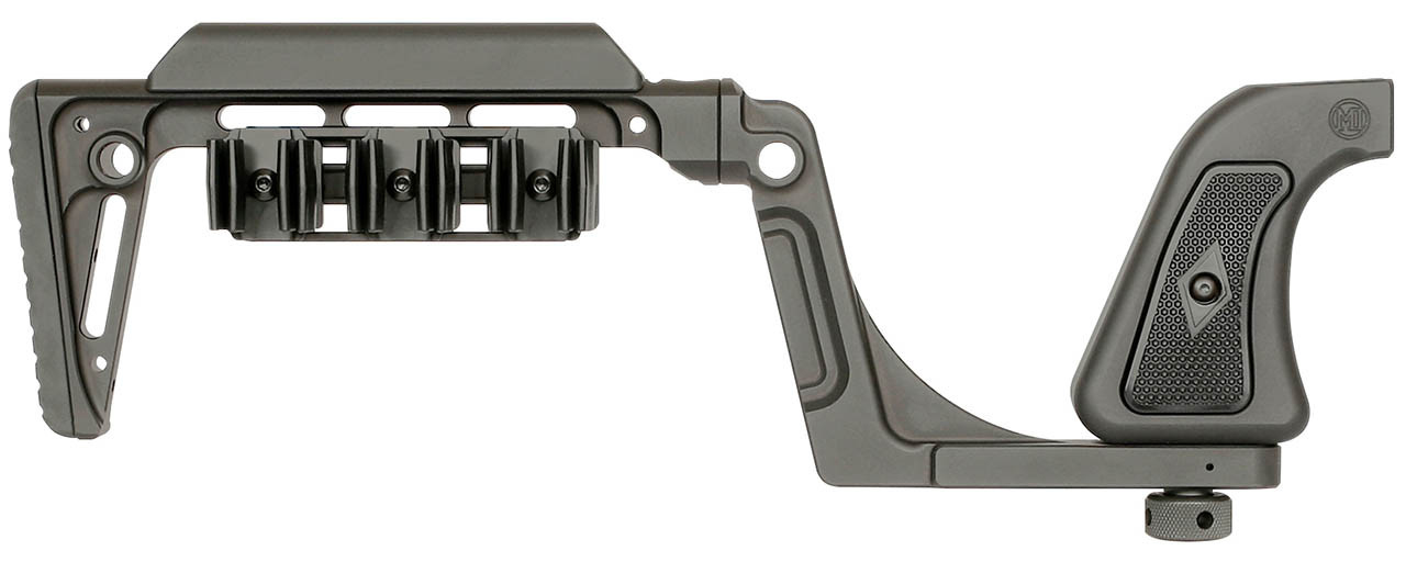 The Bounty Hunter Series is a groundbreaking patent pending new system that introduces an entirely new approach to how revolvers can be configured and experienced. Designed to provide additional points of contact increased stability enhanced comfort and simplified takedown for storage and transport it reimagines the revolver as a more adaptable and customizable platform. – Compatibility Only for use with Magnum Research BFR Revolvers with cowboy/standard grip – Specifications – Available as a stock or arm brace designed for enhanced stability and control across small and large revolver calibers – Constructed from Hard Coat Anodized 6061 Aluminum for the grip stock and Z-beam ensuring durability and lightweight performance – Features polymer textured grip panels a polymer cheek piece and a rubber butt pad for superior comfort and recoil management on the stock version – Properly aligned height for seamless use with iron sights and red dot mounts – Multiple points of contact improve shooting accuracy and control – Ambidextrous design for right or left-handed shooters – Includes a shell plate holder with 3 Midwest Industries Universal Shell Holders compatible with any revolver caliber and allowing 6 rounds of ammunition to be stored – Hardened steel takedown thumbscrew enables easy disassembly for compact storage – Equipped with 5 quick-detach sling sockets for customizable sling configurations – Designed with sufficient room for easy firearm handling and operation – Patent-pending Design – Made in the USA – Lifetime Warranty – Weight: 1.75lbs