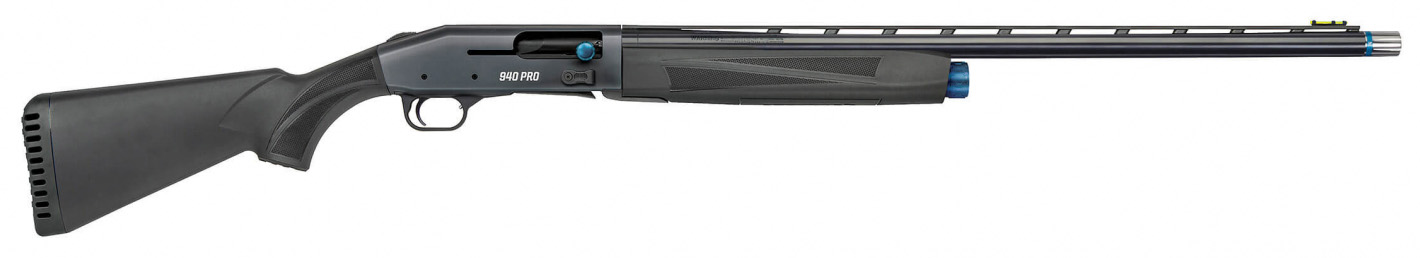 Gain the competitive advantage with the 940 Pro Sporting. This model offers a host of specialized features. Outside an adjustable stock with 1.75 range of LOP comes with shims to adjust cast/drop for a custom fit. The stock and streamlined forend feature Mossberg signature texturing for a secure grip and a HiViz front fiber optic sight and Briley extended chokes help keep you on target. Inside you’ll find a durable gas system and a host of corrosion-resistant internal parts and finishing (nickel-boron coated gas piston magazine tube hammer and sear). An enlarged and beveled loading port elongated elevator and anodized follower come together to provide smooth operation and help optimize this shotgun for speed accuracy and durability. – Clean-Running Gas-Vent System – Quick-Empty Magazine Release – Reduced Length of Pull (Adjustable) – Drilled and Tapped Receiver – Adjustable for Drop at Comb/Cast – Briley Extended Choke Tubes Set – HIVIZ CompSight Fiber Optic Sight – Specifications – Gauge 12 Gauge – Action Type Semi-Auto – Chamber Size 3 – Usage Hunting / Sporting – Barrel Type Vent Rib – Barrel Length 26 – Barrel Finish Blued – Choke Briley Ext Set – Capacity 4+1 – Length 46.25 – LOP 12.5-14.25 – LOP Type Adjustable – Sights HIVIZ CompSight FO – Stock Adj. LOP Cast Drop Synthetic (Black) – Weight 7.25