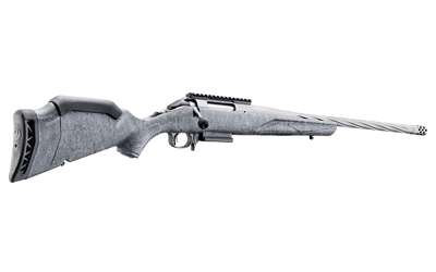 Ruger is proud to introduce the Ruger American Rifle Generation II, an update to the American-made rifle that has been the benchmark for accuracy, durability, and performance in bolt-action rifles for over a decade. Upgraded features include a durable, attractive Cerakote finish on the barreled action, a threaded bolt handle, stainless steel bolt body, and intuitive three-position tang safety that locks the bolt, which prevents inadvertent bolt opening yet allows the rifle to be loaded with the safety engaged. The rigid stock features a removable comb riser to improve sight alignment when using optics, as well as a length of pull (LOP) spacer, which can be removed or replaced to accommodate a variety of statures. Designed with customer feedback in mind, the Ruger American Rifle Generation II is sure to become the first choice for hunters and firearms enthusiasts. The standard generation II models feature a durable, Gun Metal Gray Cerakote barreled action and a dark gray stock that is textured with black and gray splatter for excellent grip and control in the field. The 20″, medium-contour, cold hammer-forged barrel features deep spiral fluting on most models, improving the balance of the rifle without sacrificing rigidity or accuracy. The threaded muzzle features a factory installed radial muzzle brake.