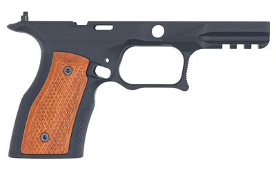 The Sharps grip module for the Springfield Armory Echelon (9mm) is machined from billet 7075-T6 Aluminum and provides excellent durability with a mil-Spec black anodize finish and Brazilian Cherry grip panels.