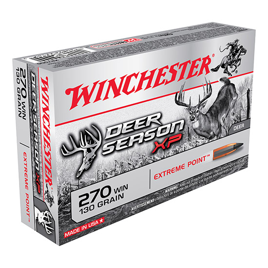 Deer Season XP ammunition combines our extensive experience into a product engineered specifically for deer hunters. The Extreme Point bullet features an oversized impact diameter. A bigger impact diameter means more impact trauma better energy transfer and larger wound cavities for faster knockdown. – Caliber: 270 Winchester – Bullet Type: Extreme Point Polymer Tip – Bullet Weight: 130 gr – Muzzle Energy: 2702 ft / lbs – Muzzle Velocity: 3060 fps – Rounds Per Box: 20