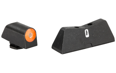 XS DXT2 Big Dot Night Sights offer the best front sight visibility in all lighting conditions. DXT2 Big Dot sights drive focus to the front sight using a high-contrast front and a V-notch rear for an unobstructed view of the front sight. DXT2 Big Dot front sights use a patent pending glow dot that absorbs light and glows in low light levels before it is dark enough to see the tritium. Optic Orange is designed to offer a high-contrast sight picture when shooting in bright light conditions and maintain its visibility in decreasing light levels. To ensure visibility in low light when uncharged, optic orange is primarily based on yellow with a hint of red. The increased surface area of the convex dot increases light absorption, intensifying the charge of the glow properties of the dot. The dot-the i sight picture, with a tritium dot in the front sight and a tritium bar in the rear, prevents confusing the front and rear sight in high-stress situations. The wide field of view increases visibility of the front sight and of the threat downrange.
