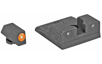 XS R3D Night Sights feature a traditional 3-dot tritium, notch and post sight picture. The blacked-out rear increases contrast against the front sight. The front sight is available in orange or green and is equipped with Ember(R) Glow Dot Technology. Ember absorbs ambient light and glows in low light. The front tritium lamp charges the Ember dot making the front sight glow brighter than the rear at all times, keeping focus downrange. R3D sights are the brightest notch and post option for fast and accurate shooting in bright and low light.